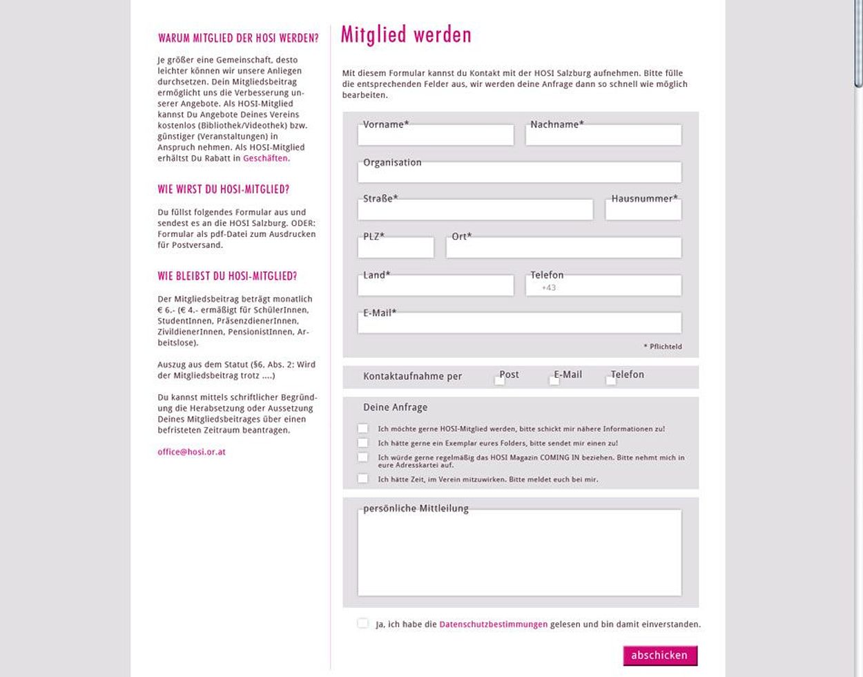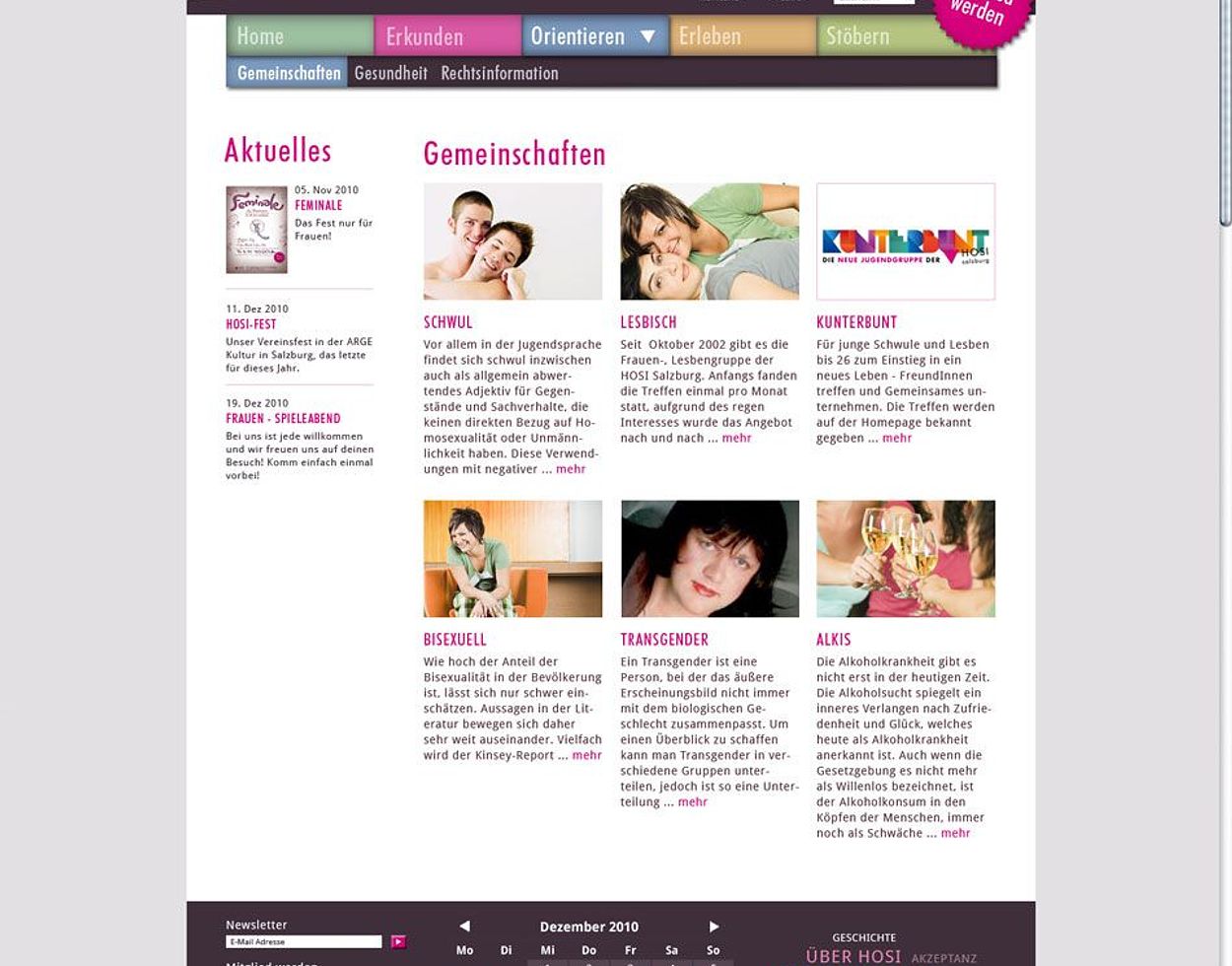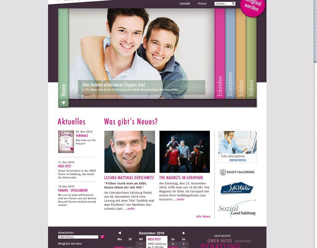 Die HOSI Salzburg (homosexuelle Initiative Salzburg) benötigte eine inhaltliche und grafische Neugestaltung ihrer Website und entschied sich dieses Projekt im Herbst 2010 an Studenten zu vergeben.