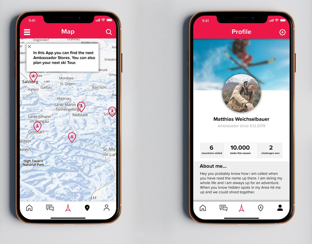 Global player and Austria based ski manufacturer Atomic briefed students of the Master Programme with the task to develop concepts for a more sustainable skiing adventure of the future. Thus Atomic intensively increases their efforts to provide a more eco-friendly sporting experience. One of the possible ways to decrease waste and impact of sporting goods is the concept of sharing economy. The featured student team used an in-depth field research to ask skiers about the circumstances that can increase the interest in sharing sports equipment. The led to a result called "Atomic Ambassadors". This exclusive club provides its members with equipment and information which are not available elswhere. It consists of an entire customer journey with touchpoints as the service of delivery/collection of the lent equipment, easy and quick ski swap depending on the type of ski holiday, exclusive skiing gear, an app with recorded ski data and a network of other club members and much more.