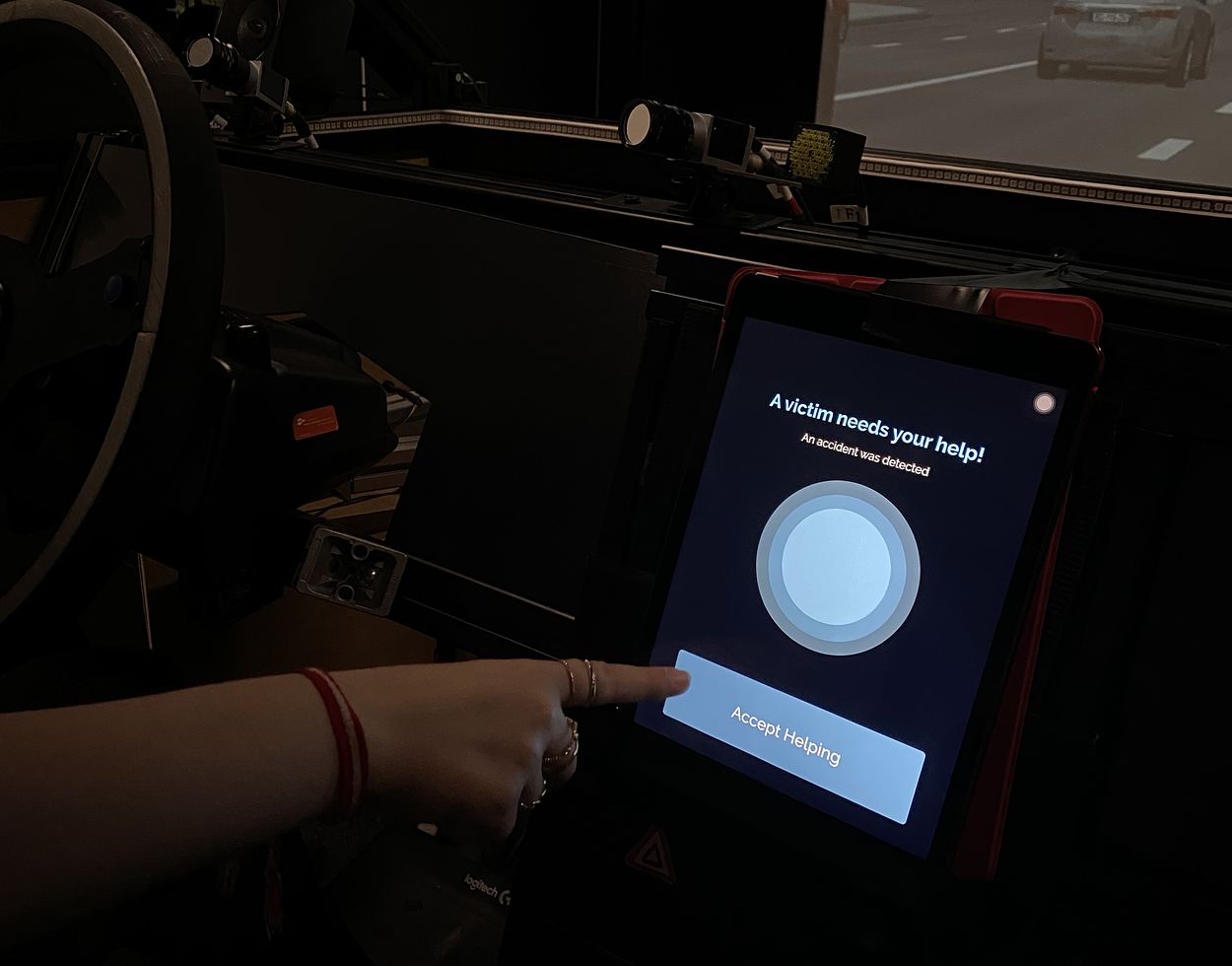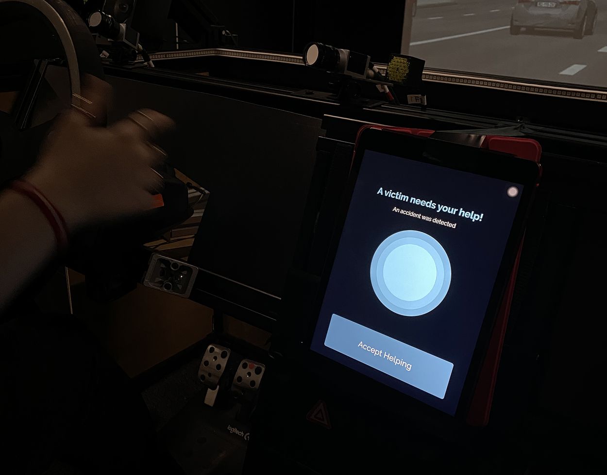 Conducting a user study on a car simulator, we found positive reactions from eight users towards AutoMate, leading to a more empathic approach from them to the victim. We investigated how AutoMate can help to reduce the bystander effect in car accidents. AutoMate is a useful tool as an integrated add-on in existing car systems.