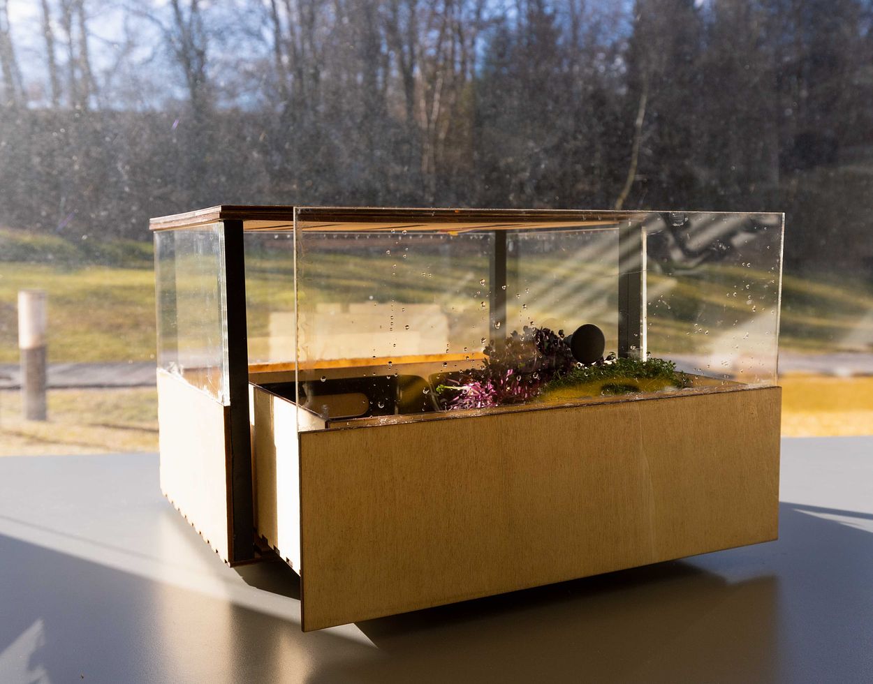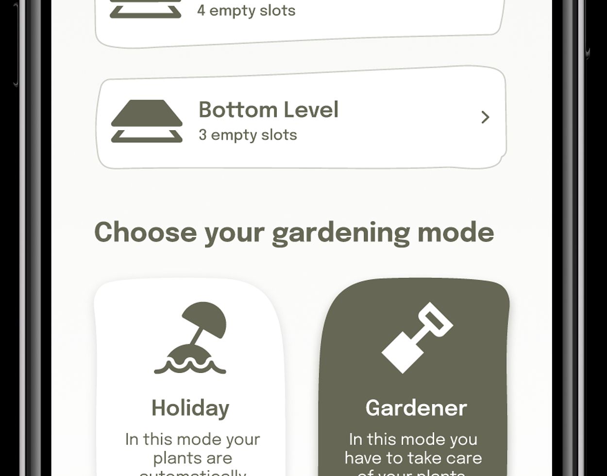 The app provides various possibilities to control the physical system. First of all, there are two-dimensional representations of the physical boxes and the plants within the boxes. Every new plant is first added digitally. The app has a huge plant database and can predict the plants needs for optimal growth. The app will guide the user to plant the plants through how to videos that can be watched. It will encourage the user to read through information sheets so that he/she knows about the plant's needs. The user can set the right environment for the plants (temperature, etc.) through sliders. Also, the app will give notifications about important events like watering or harvesting of plants. In general, the modul.Grow app provides users feedback on the status of their plant growth and on necessities that require the user’s attention. Some images of the prototype digital app can be seen below.