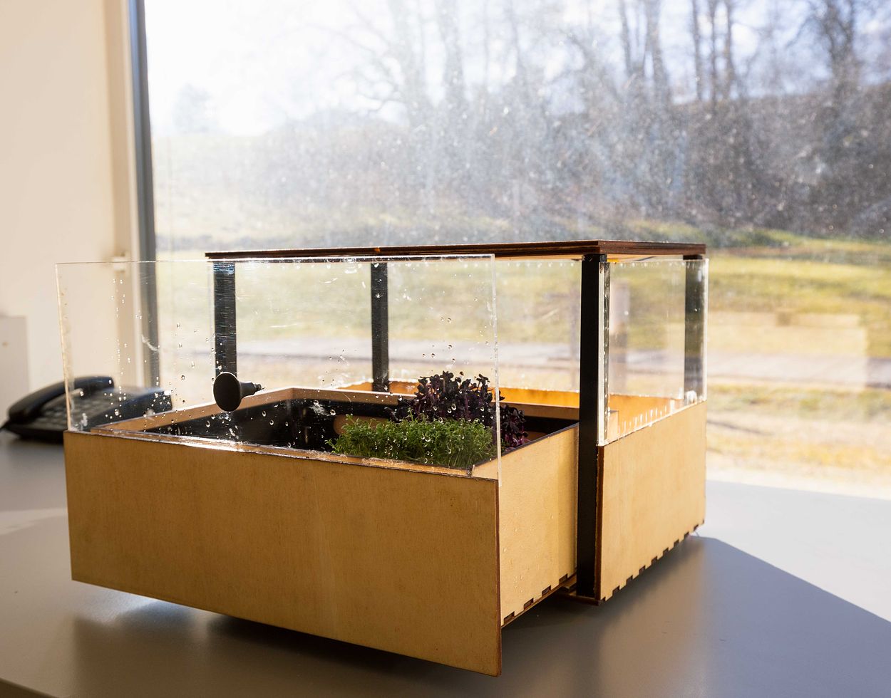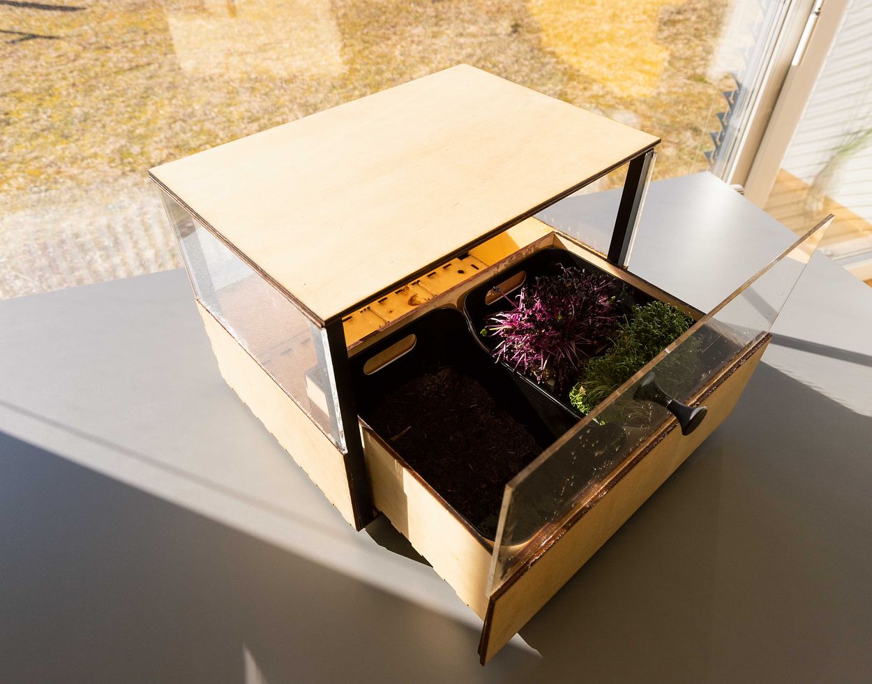 The modul.Grow offers the innovative aspect of being used to grow plants, spices, herbs, mushrooms, etc. in the comfort of your own home. It is not necessary to have a garden or a balcony, not even to have a place with natural sunlight for the plants to grow. The modular plant box system offers the possibility to grow plants without the source of natural sunlight and without taking up too much space. It can be placed in every apartment or house and the modular system offers the user to stack as many of the boxes as needed.