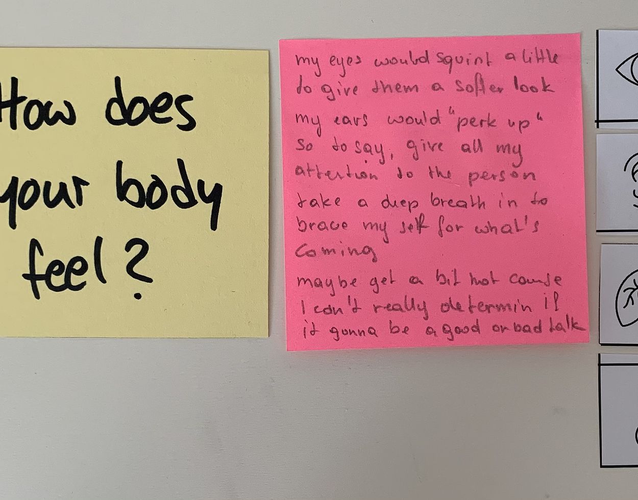 In face-to-face communication, people can often achieve empathy by understanding the explicit and implicit emotions shared through body-language, word usage, and tone. But in digital communication it becomes difficult to share or identify these (non)verbal cues, especially after ambiguous conversation starters such as “hey, can we talk?” are sent. In this paper, we explore how a tangible artefact could enhance empathy in text-based communication by physically sharing implicit emotional feedback. We conducted two workshops to understand the emotions involved in ambiguous conversation starters and how they can be expressed through an artefact. These workshops resulted in a prototype of a phone case that sends the sender of a text message the initial implicit emotional reaction of the receiver using haptic patterns to inform the receiver how best to proceed. This paper concludes by discussing the nuances of designing for emotions in text-based communication as well as suggestions for future work.