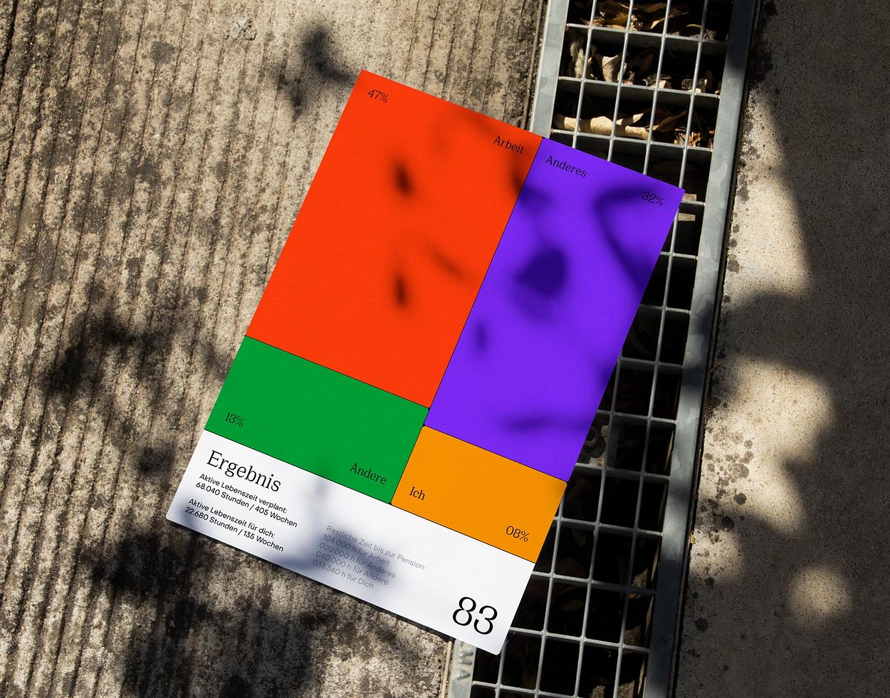 Durch die Datenvisualisierung werden die Betrachter*innen mit der Gestaltung Ihrer Lebenszeit konfrontiert.