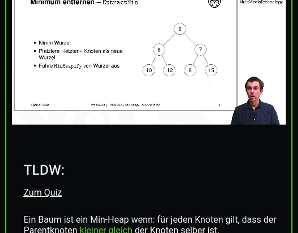 The interactive features and visual representations on the website will enable learners to actively engage with the content, rather than passively absorbing information from videos by FH-Ass.Prof. Andreas Bilkes, MSc. Students will have the opportunity to experiment with algorithms and data structures, which can lead to a deeper understanding. To further solidify their knowledge, each topic is accompanied by a quiz.