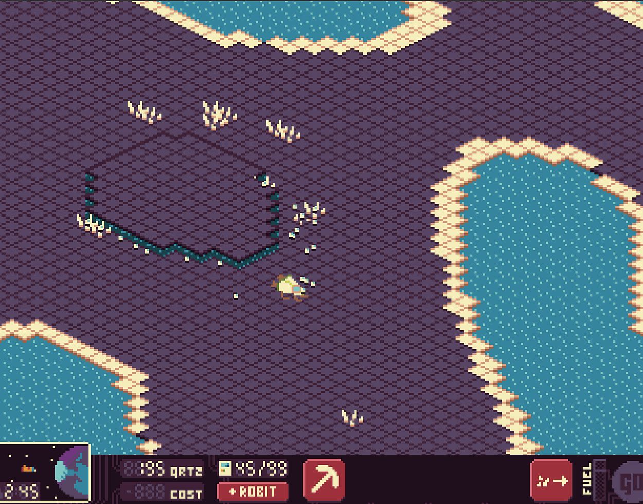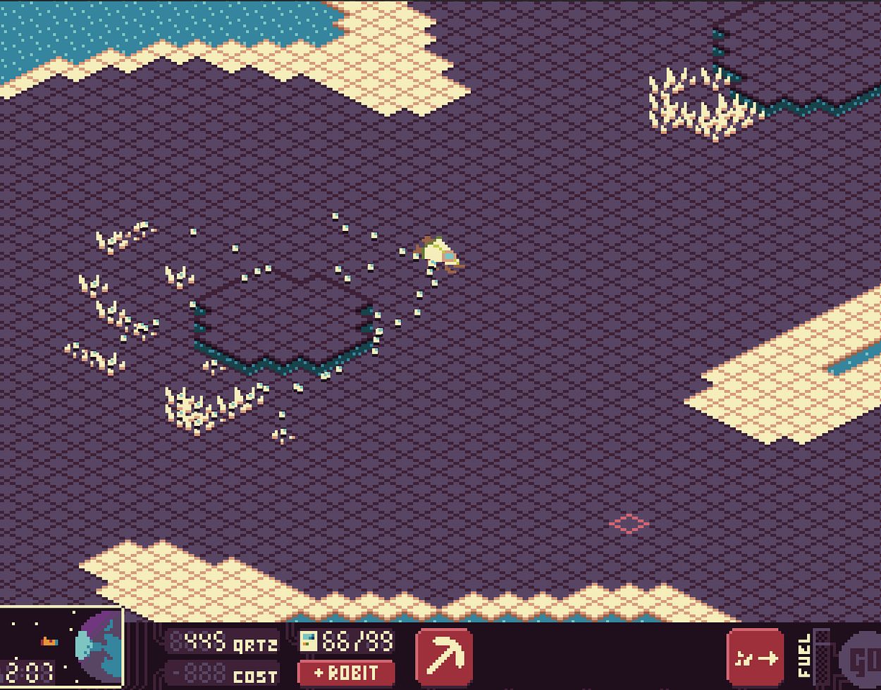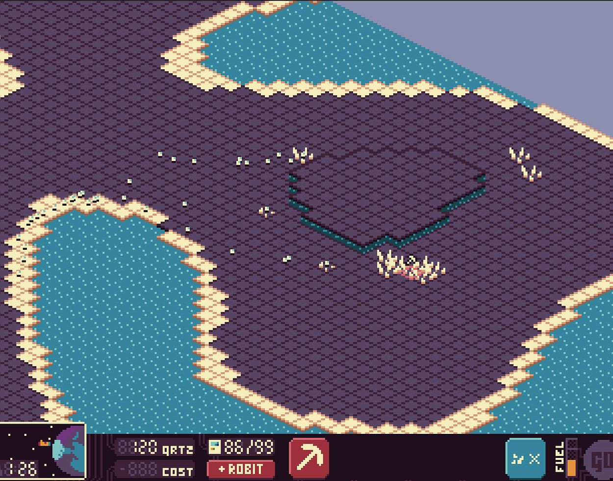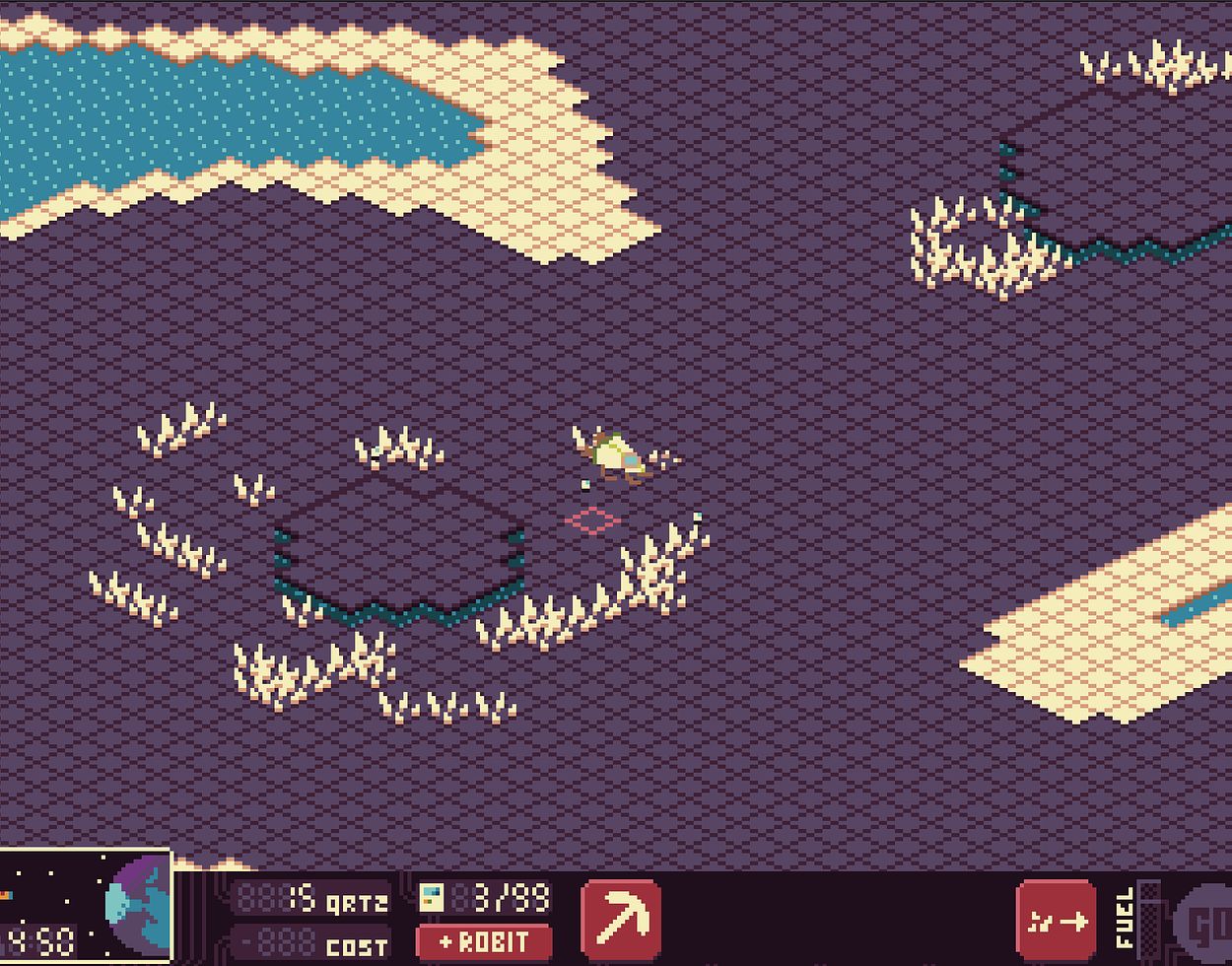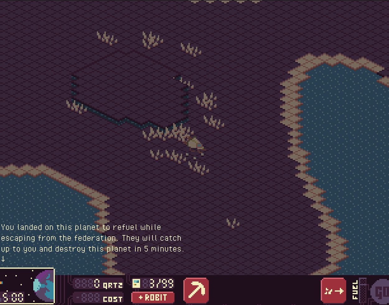 Sulphuric quartz is the essential resource in this universe, powering everything from robots to spaceship fuel. You must strategically decide whether to invest quartz into creating more robots or converting it into fuel for your escape.
