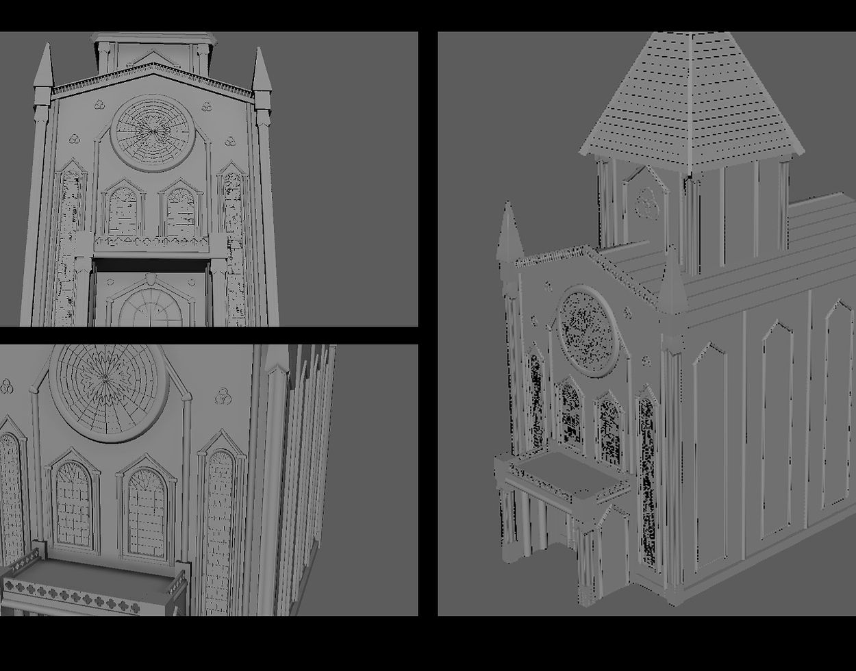 Insziniert wird das ganze durch eine animierte Kamerafahrt in Unreal, wo eine Kirche, gemodelt in Maya und gepainted in Substance, in den Fokus gerückt wird. Begleitet wird all das durch einen Soundtrack, kreiert in Ableton Live, und Soundeffects.