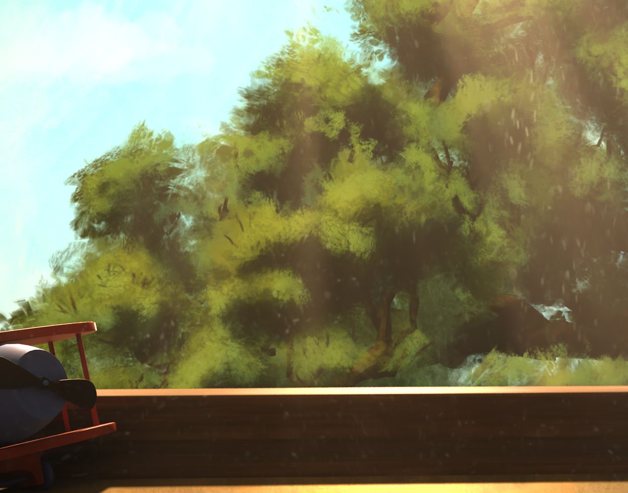 1. to display the warped remembering of time, especially of events long passed, as well as an environmental story telling device we set out to fill the room with minute continuity mistakes, that are intending to tell a secondary story arch that adds further context to the primary arch. So, for example the changing of the pictures in the background, the moving of the trash and the toy plane.