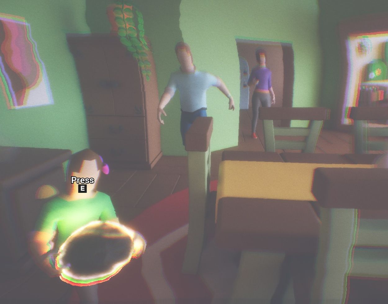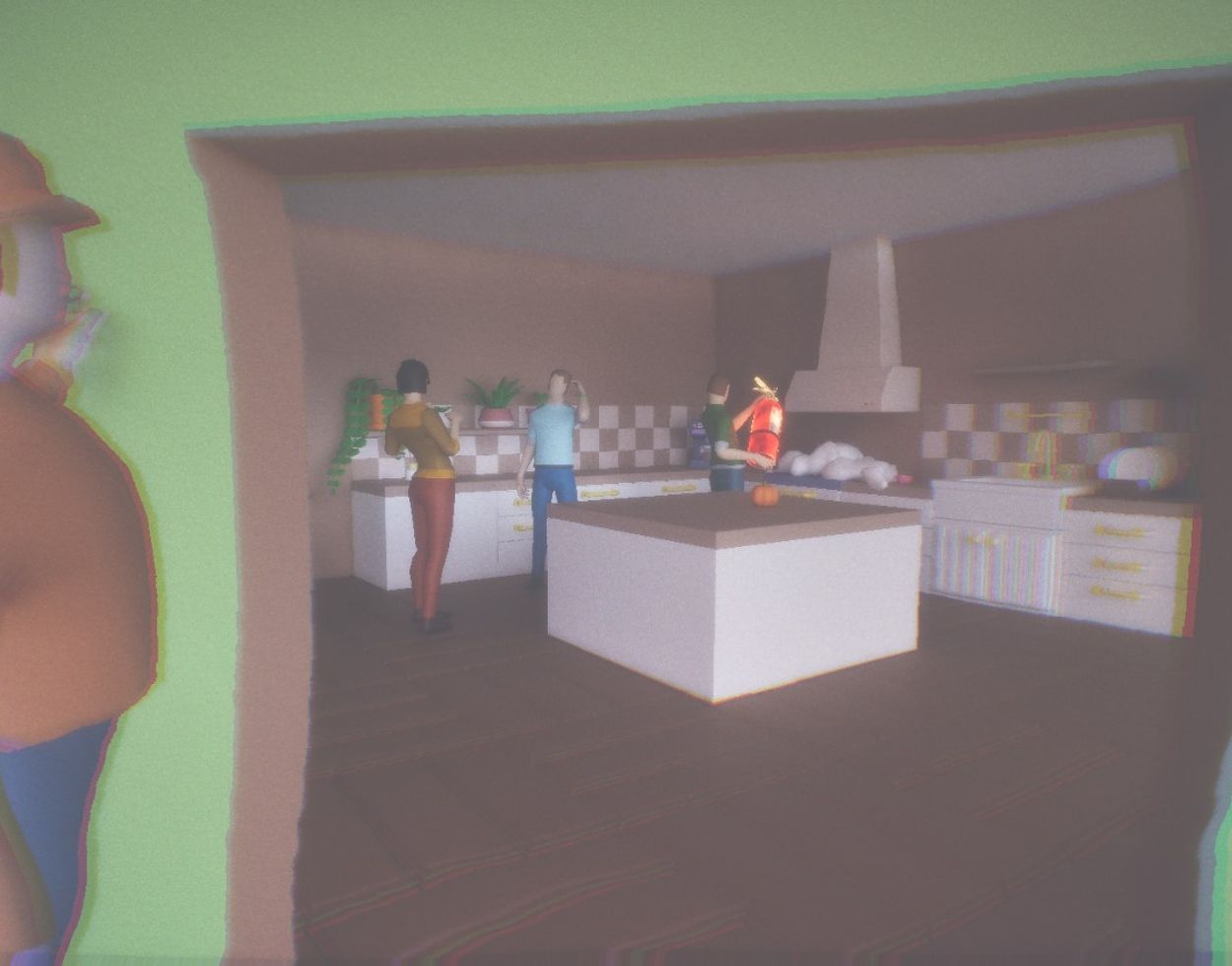 We used a combination of assets from the Fab Asset Store and custom models to bring Max’s world to life. Gitta was mainly responsible for the character design and creation using Maya and Blender. Sina created the VFX effects, including for example the shininess of the items and the level switch. Felix Engelmann created the soundtrack for the real word and for the flashbacks and Kilian Konz helped us out with his sound effects. Some more sounds were collected from free asset stores. Fromer FH student Bernadette drew our beautiful UI Elements.