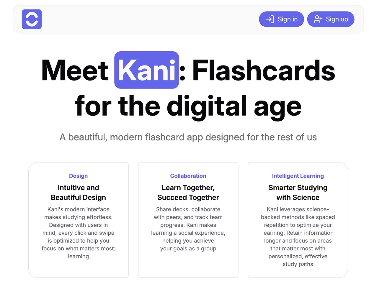 Kani is a beautiful, modern flashcard app designed for the rest of us. With its polished design and intuitive interface, studying becomes an engaging and enjoyable experience.