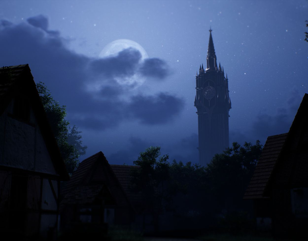 clocktower above an abandoned village. She is disconnected from the outside world and
