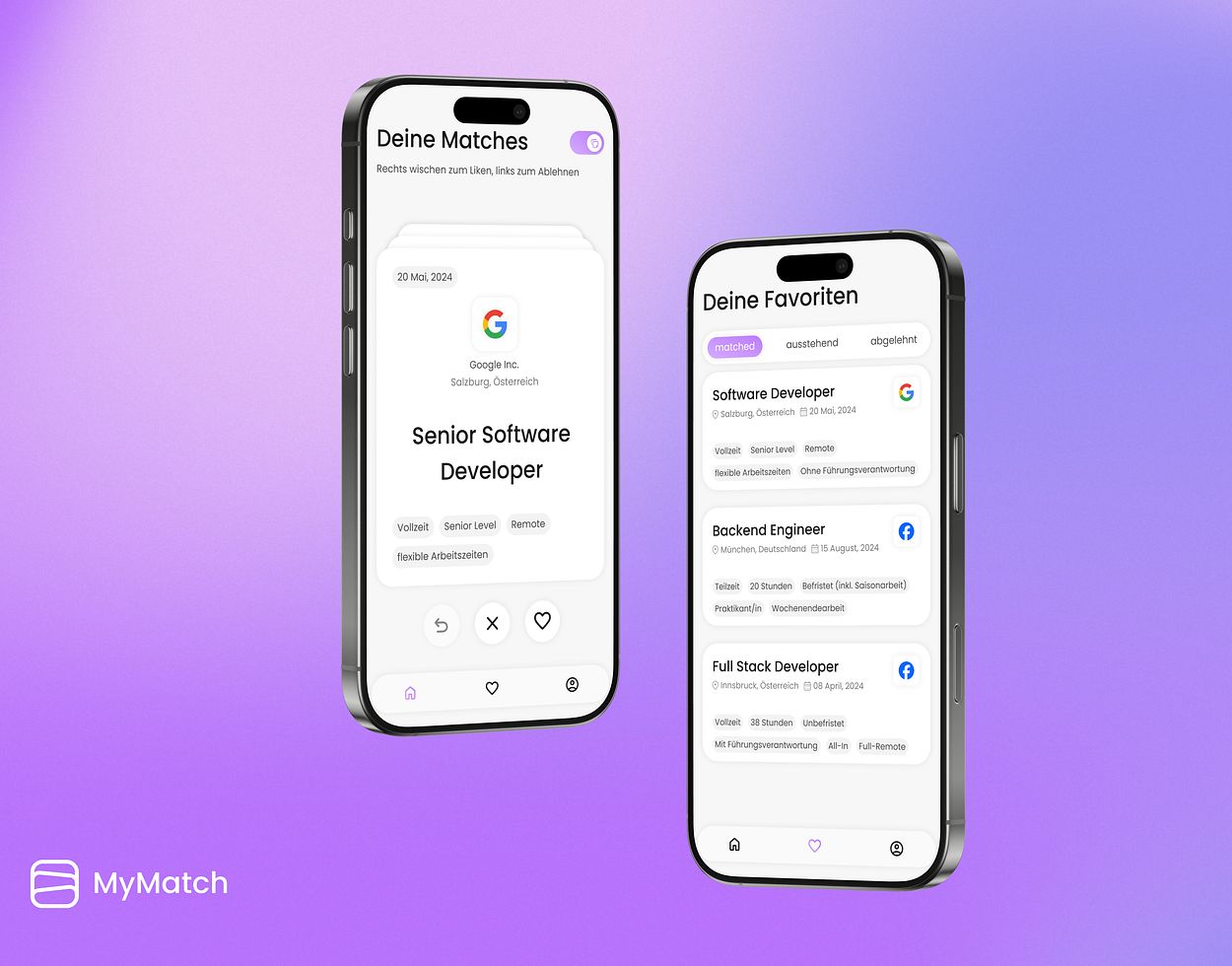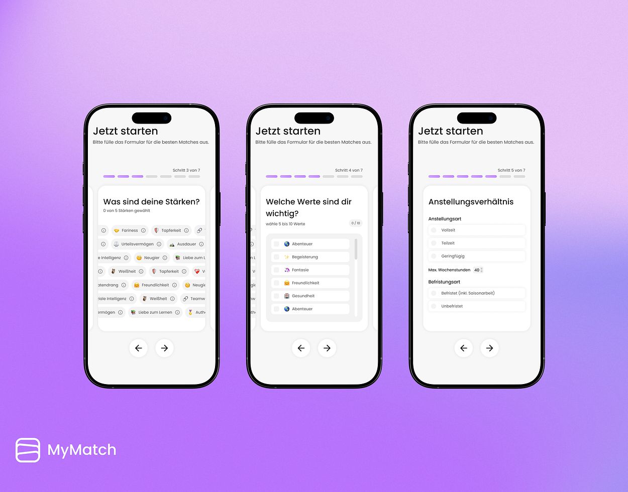 MyMatch ist eine Jobplattform, die Unternehmen und Arbeitssuchende basierend auf persönlichen Werten und Stärken zusammenbringt, anstatt nur nach Jobtiteln oder Standorten zu suchen. Ein Algorithmus bestimmt den Übereinstimmungsgrad und schafft so Matches, die langfristige Arbeitsverhältnisse fördern und Fluktuationskosten senken. Bewerber finden dadurch Jobs, die besser zu ihren persönlichen Werten und Fähigkeiten passen.
